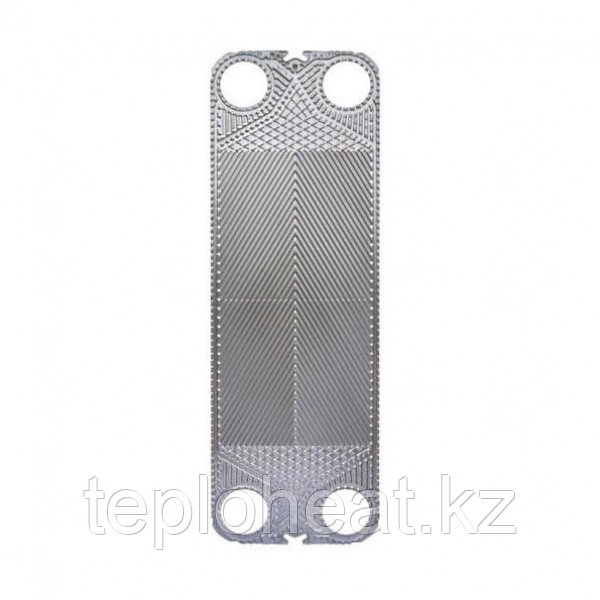 Она с цельной резиновой прокладкой с двух сторон имеет гофрированный тип поверхности, что способствует турбулизации жидких сред по каналам. Благодаря уникальному рифлению «елочкой» потоки равномерно распределяются по всей площади пластины. Теплообменники с такими пластинами находят свое применение в сферах водоснабжения, теплоснабжения, подогрева бассейнов и т.п. В нашем интернет-магазине вы можете приобрести пластины требуемой толщины (от 0,4 мм до 1 мм), в зависимости от рабочего давления и характера жидкостной среды